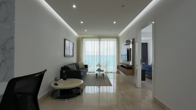 The property features 1 bedroom and 1.5 bathrooms, laid out in a comfortable and functional floor plan. The living and dining areas connect directly to the balcony, creating the perfect space to relax at the end of the day while enjoying the ocean view. The kitchen is designed for everyday use, and the apartment includes 1 private parking space. There is no maid’s room, making it perfect for one or two people who value space, location and practicality.