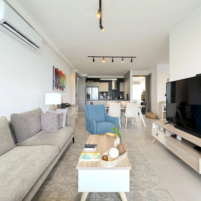 The 110 m² apartment model is ideal for those desiring spacious and functional living spaces. With 2 bedrooms and 2.5 bathrooms, it offers privacy and comfort in every area. The large windows allow natural light to flood in, creating a cozy and modern atmosphere.