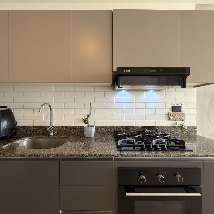 La cocina abierta se integra con la sala-comedor, maximizando el espacio y permitiendo disfrutar de un ambiente cálido y bien iluminado. Cada detalle del apartamento está pensado para brindar comodidad, desde sus acabados modernos hasta la entrada de luz natural en todas las áreas.