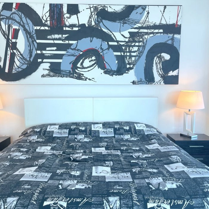 This beautiful loft apartment has large space and a wide living room area with double height panoramic views of the ocean and Costa del Este. The loft has 2 floors, connected by a spiral stair. On the first floor it has an open kitchen with built in stove and suspended extractor, half guest bathroom, living room with a comfortable sofa, large flat screen and Mac pc. On the second floor, the master bedroom has a king size bed and a master bath. The apartment has central air conditioning system and also air conditioning split units.