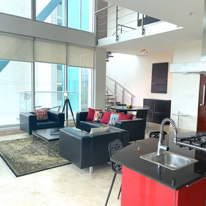 The exclusive Loft is located in the exclusive area of Punta Pacifica in the exclusive area of Punta Pacifica. Punta Pacifica area is a residential of high prestige and has many amenities for short distances. It is located 15 minutes from Tocumen International Airport, near the financial district and the Multiplaza Pacific Mall.
