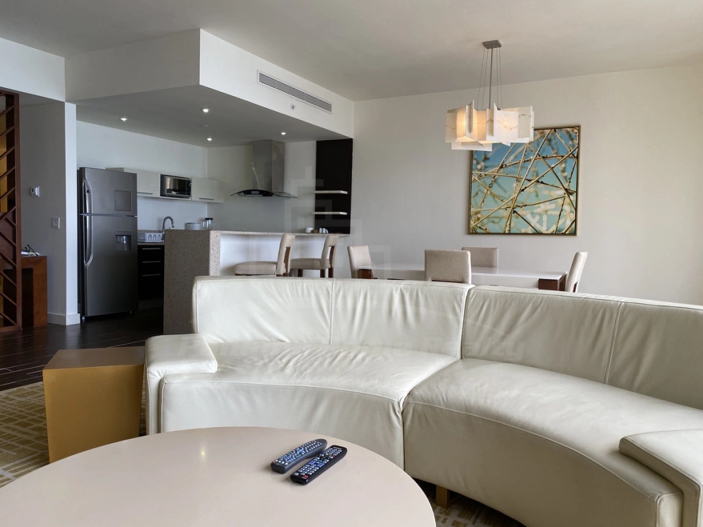 PHomerealty S.A. get specially exclusivity to offer our clients more then 30 luxury furnished apartments in Waldorf Astoria Panama with amazing view and hot tap jacuzzi on your private terrace with stunning direct ocean views, high end furniture, and access to room and cleaning services at the Waldorf. Master bedroom is spacious and the master bath is large and elegant. Living room with open kitchen, large dining area and direct views out towards the bay of Panama.