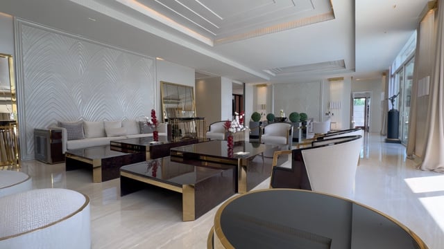 The residence boasts a flawless layout, featuring four expansive bedrooms, each with its own private bathroom, along with an elegant den for family gatherings or work. Refined details shine throughout the property, from exclusive Fendi furniture to Italian marble floors and Baccarat crystal chandeliers, adding unmatched sophistication. The outdoor area includes a private pool, perfect for relaxing while enjoying the stunning surroundings.