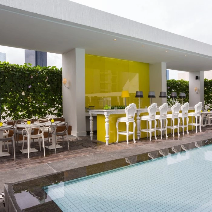 Arts&Yoo Panama is located in the heart of the Balboa Avenue, a spectacular strip that borders the ocean and offers magnificient views of the Panama Bay, Panama City and Panama Canal to its residents. It is also conveniently located within walking distance from main recreation centers and the banking district From the moment you arrive a stunning architecture will embrace your journey into Arts&Yoo by Philippe Starck´s world of style and sophistication. The double height exclusive lobby offers several area to unwind and breakaway from your everyday world. The spectacular 3300 sq. ft. Pool is surrounded by day cabanas and other amenities to ensure a perfect hideway and relaxation place.Yoo by Starck sculpted gardens are featured throughout the Arts&YooPanama building , with lush common areas on the lower ground floor and beautiful communal rooftop garden overlooking the city and the Pacific Ocean.